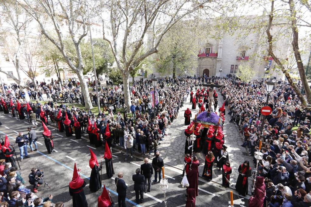 El Viernes Santo es diferente. Personalmente, la procesión general me cansa. A las cofradías hay que verlas en sus procesiones, en sus barrios, en sus templos. Con su gente, sus tradiciones y sus reglas. Creo que es una opinión bastante extendida: si bien es muy práctico sentarse y ver todos los pasos sin moverse, creo que los de aquí preferimos lo de ayer, movernos, brujulear, hacer un poco el zascandil y perdernos en una ciudad que es un museo en su día de fiesta, el día de puertas abiertas a la hora del ágape de la fe y de la esperanza. Está bien para los turistas, que, por cierto, llenaron la ciudad. Pocas cosas gustan más a un vallisoletano que ver a una familia con un mapa y con la boca abierta. Yo me tomo cada suspiro como un homenaje y si alguien me pregunta algo me entra tanto orgullo que me dan ganas de abrazarles e invitarles a un vino.