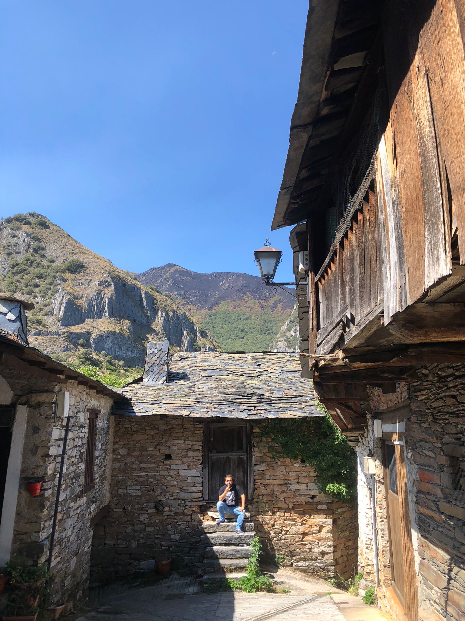 En cualquier caso, no fue para tanto. Llegamos finalmente a Peñalba de Santiago, que es oficialmente uno de los pueblos más bonitos de toda España. Y no seré yo quien contradiga su fama: mi miedo valió la pena. Ese pueblo de quince habitantes a media hora de la civilización y muy cerquita del cielo es una joya inenarrable y emocionante, una especie de aldea de Astérix conservada como si no hubiera pasado el tiempo. Entre otras cosas porque sus habitantes así lo han querido, se han apeado del mundo y del progreso para vivir en estos valles, conservándolos y protegiéndolos como lo que son: su bien más preciado. Su iglesia mozárabe se terminó de construir en el 937, o sea que quizá se comenzara antes de que naciera el propio Reino de León con García I. Es decir, en tiempos del Reino de Asturias, es decir, la primera fase de la Reconquista.